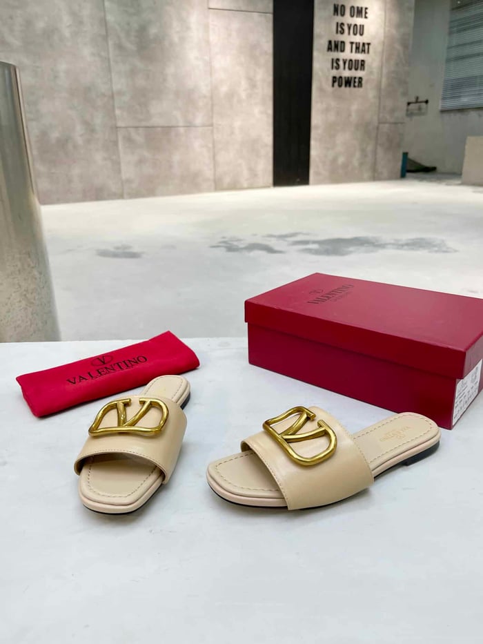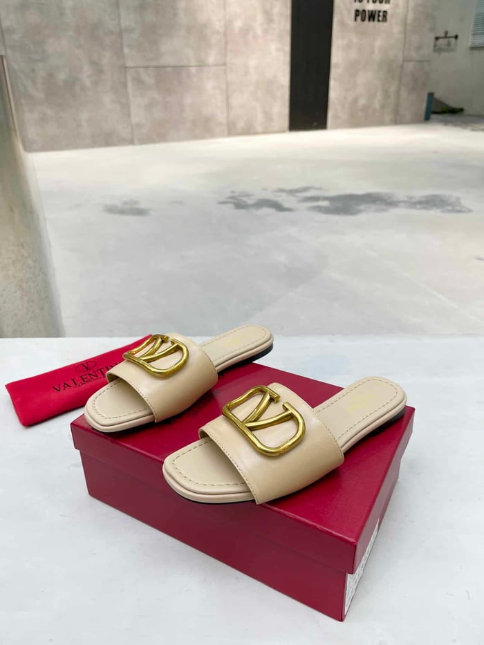 Valentino Garavani Vlogo Signature Slide Sandal Beige