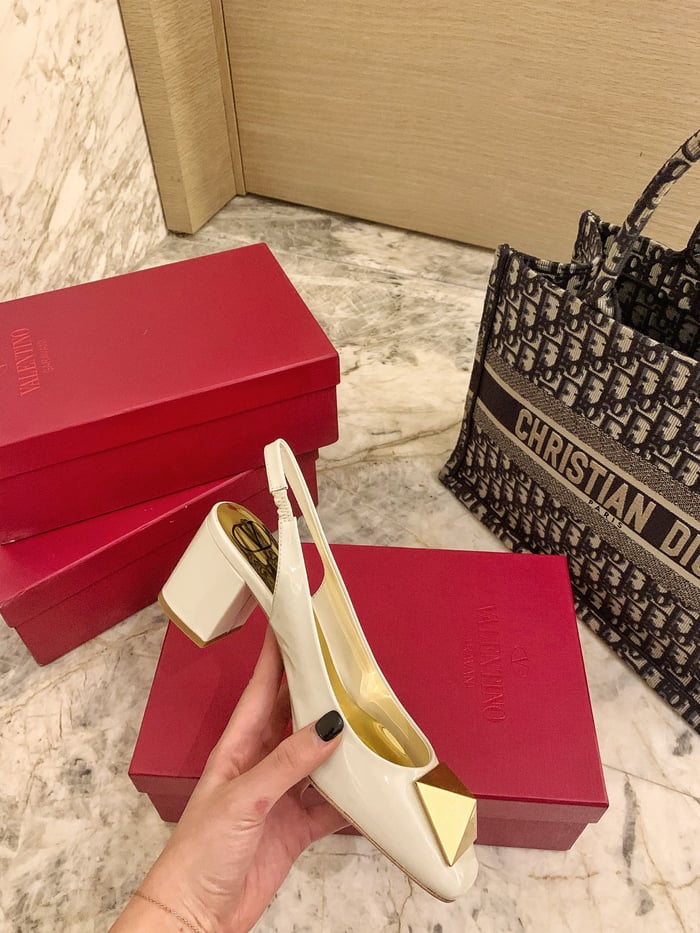 Valentino Vlogo Signature Patent Leather Slingback Pump White