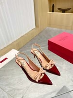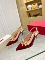 Valentino Rockstud Bow Slingback Pump In Patent Leather With Matching Studs Red