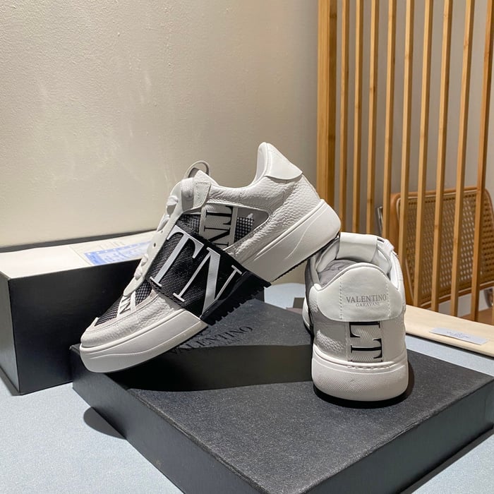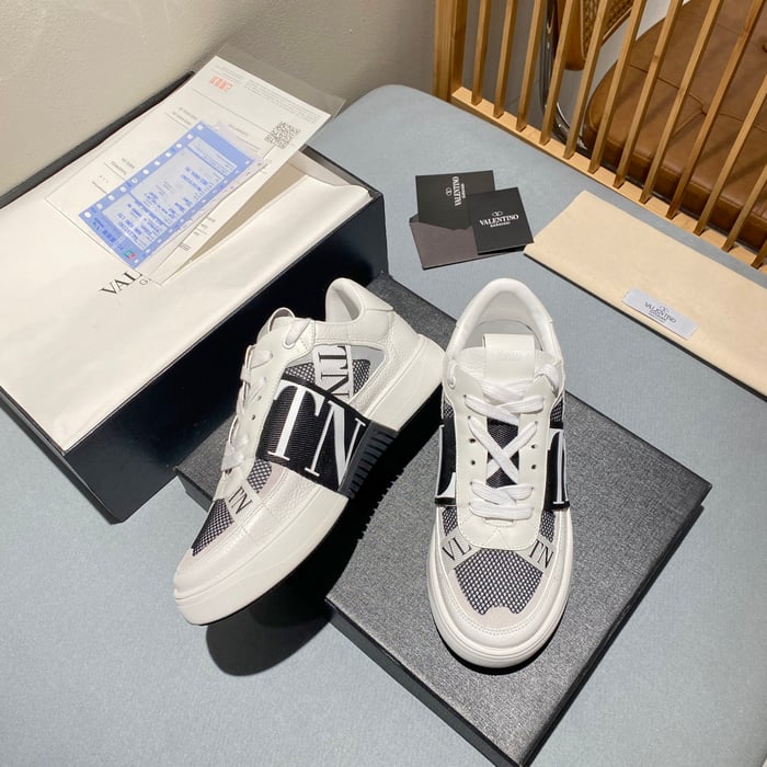 Valentino Vl7N Low-Top Sneaker In Calfskin And Mesh Fabric With Bands Black