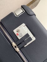 This luxurious Hermès travel suitcase is a perfect blend of elegance and functionality. Crafted from high-quality blue canvas, it features premium leather trims that enhance durability and add a touch of sophistication.