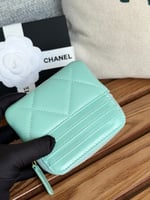 Chanel 19 Zipped Coin Purse 11Cm Turquoise Blue Lambskin Gold Hardware