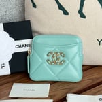 Home Shop Wallets Chanel Wallets Chanel 19 Zipped Coin Purse 11Cm Turquoise Blue Lambskin Gold Hardware
