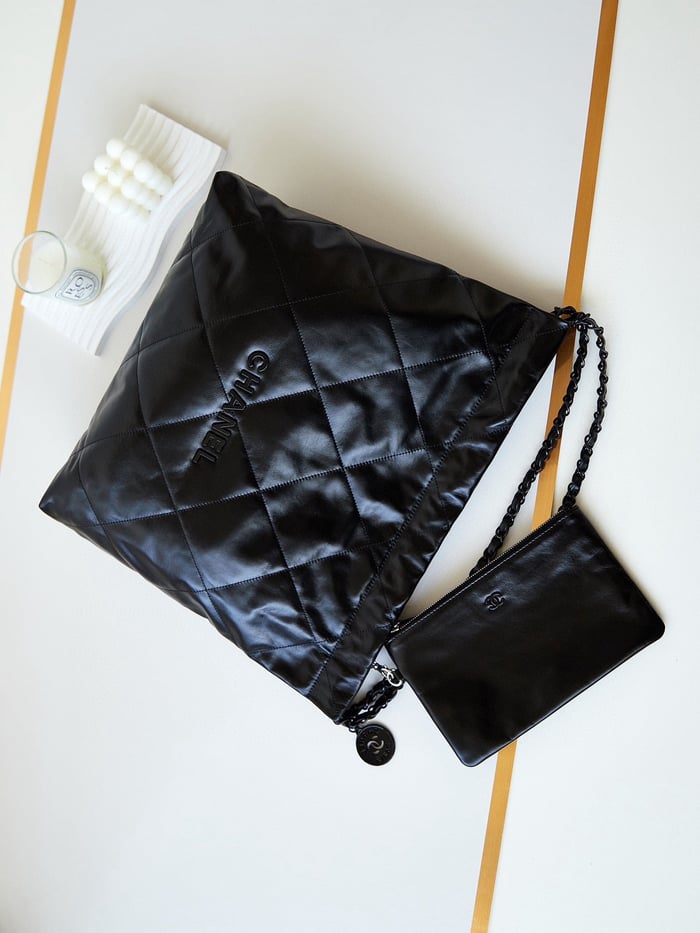 Chanel 22 Hobo Black Calfskin Black Hardware