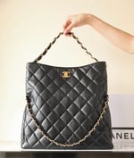 Chanel 24P Hobo Bag 36Cm Black Lambskin Gold Hardware