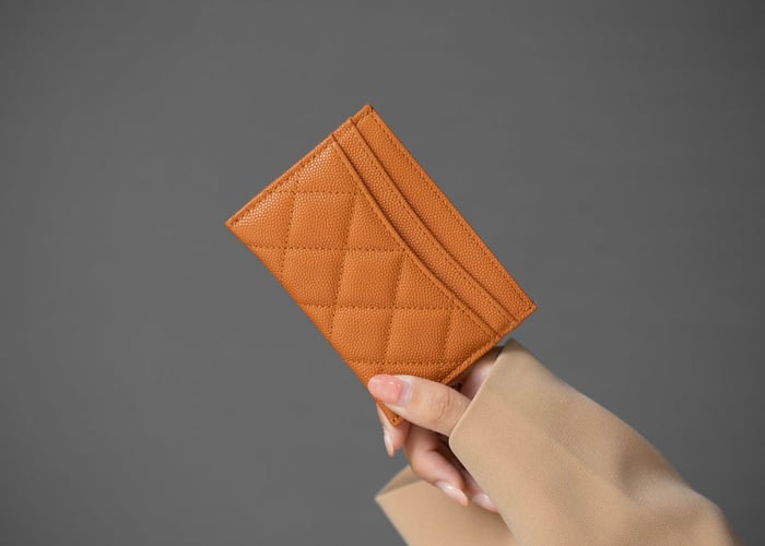Chanel Card Holder 11 Orange Grained Calfskin Silver Icon