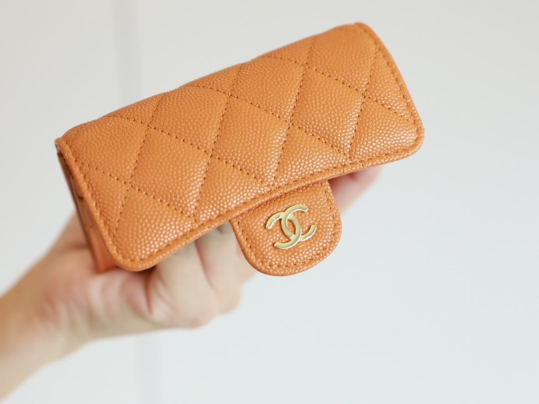 Home Shop Wallets Chanel Wallets Chanel Flap Card Holder 11.3 Orange Grained Calfskin Gold Icon