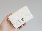 Chanel Flap Card Holder 11.3 White Grained Calfskin Gold Icon