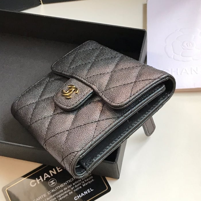 Chanel Flap Card Holder 11.5 Black Grained Calfskin Gold Icon