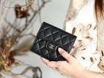 Chanel Flap Card Holder 11.5 Black Grained Calfskin Silver Icon