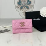 Home Shop Wallets Chanel Wallets Chanel Flap Card Holder 11 Pink Grained Calfskin Gold Icon