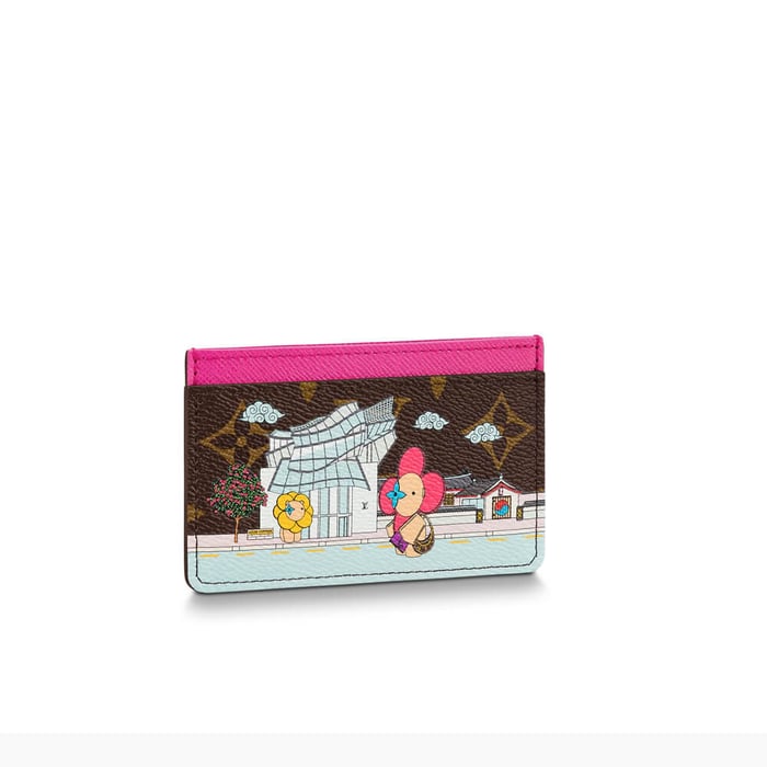 For the Vivienne Holidays 2022 collection, the Card Holder in Monogram canvas features an exclusive print paying tribute to South Korea. It shows Louis Vuitton mascot Vivienne in front of the Seoul boutique, alongside a Sakura tree and a temple. An invitation to travel, this practical and collectible accessory makes a perfect gift.