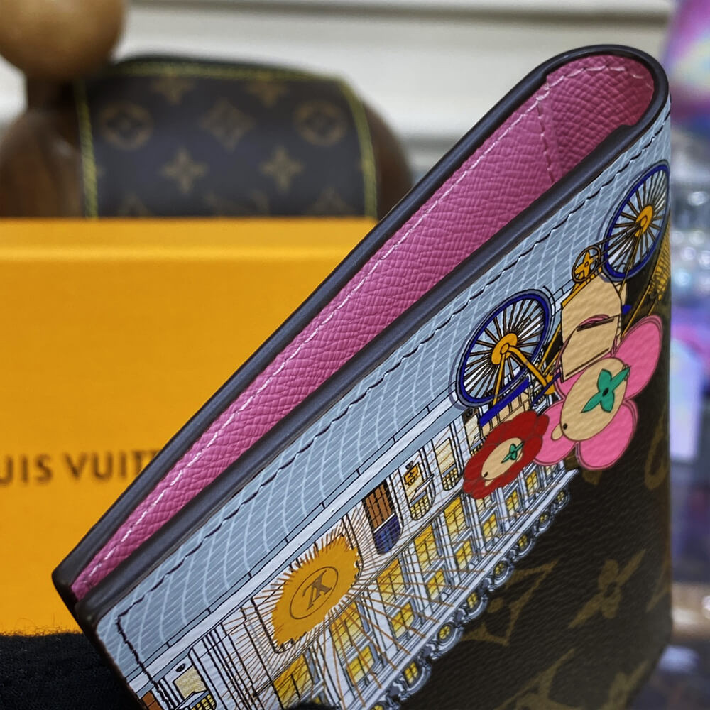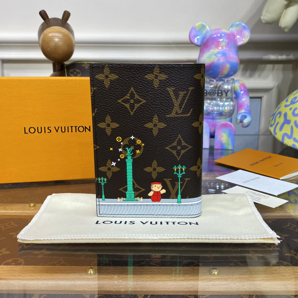 Louis Vuitton’s Vivienne Holidays 2022 collection celebrates travel with a collectible edition of the Passport Cover in Monogram canvas. It features an exclusive print showing House mascot Vivienne in front of the Paris boutique on Place Vend?me, complete with the historic Vend?me column. A pink leather lining complements this essential travel accessory, which makes an ideal gift.