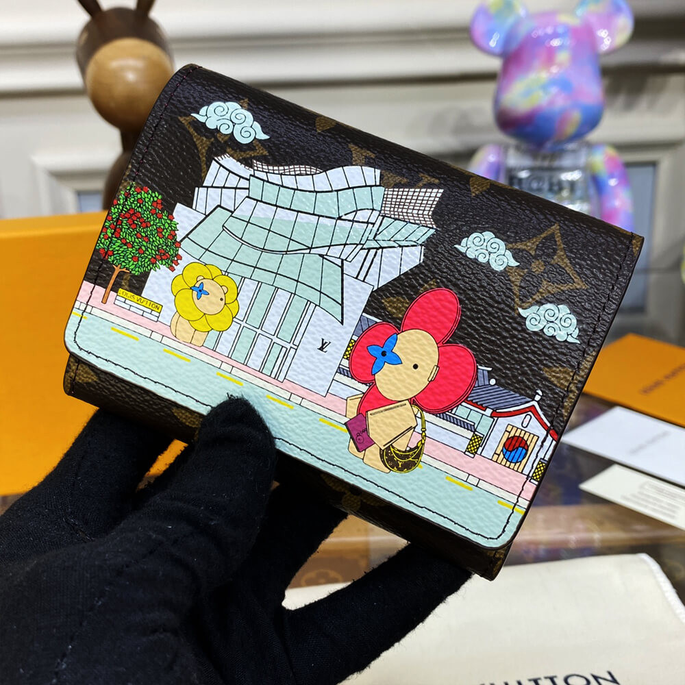 This collectible edition of the Victorine wallet in Monogram canvas features an exclusive print paying tribute to South Korea. Part of the Vivienne Holidays 2022 collection, the design shows Louis Vuitton’s Vivienne mascot alongside its futuristic Seoul boutique with a Sakura tree and a temple. This tiny yet surprisingly spacious wallet unfolds to reveal a fuchsia-pink leather lining.
