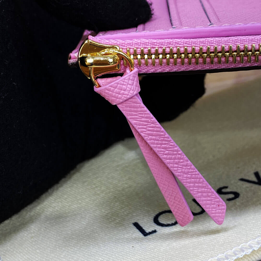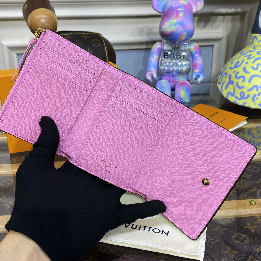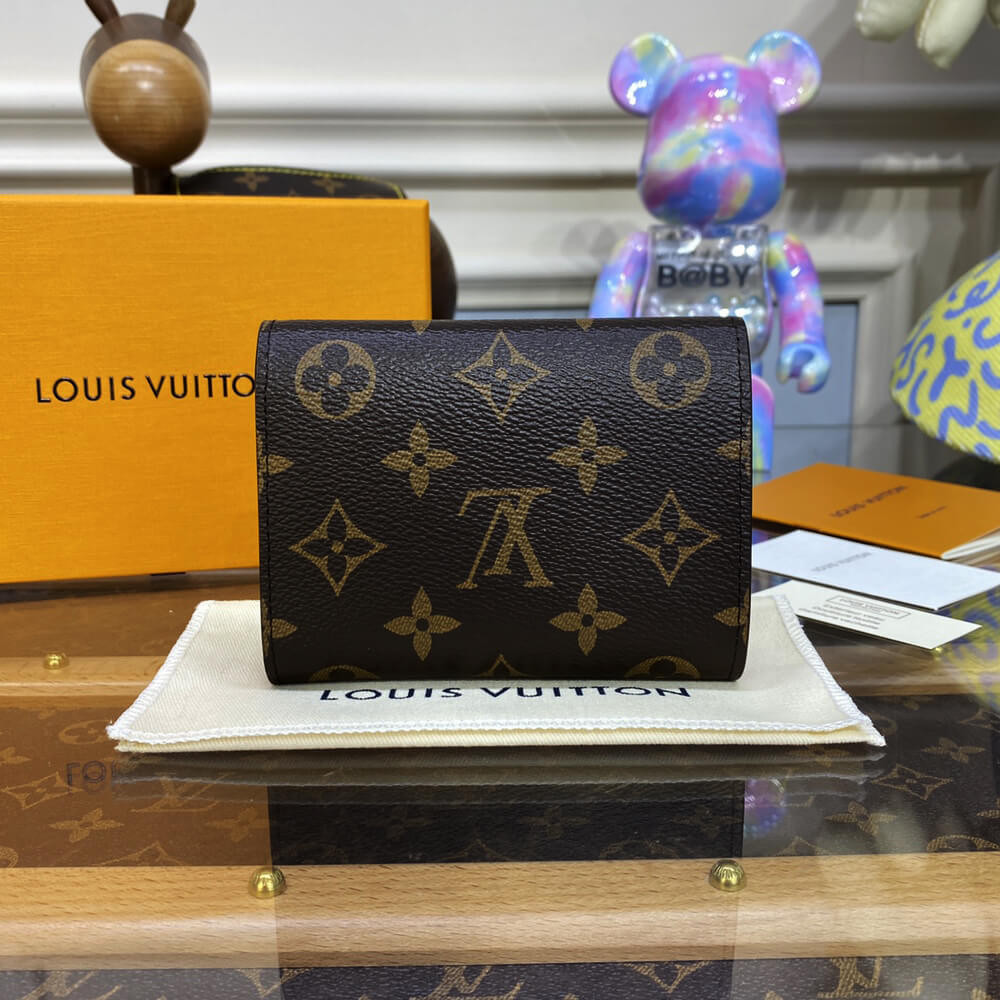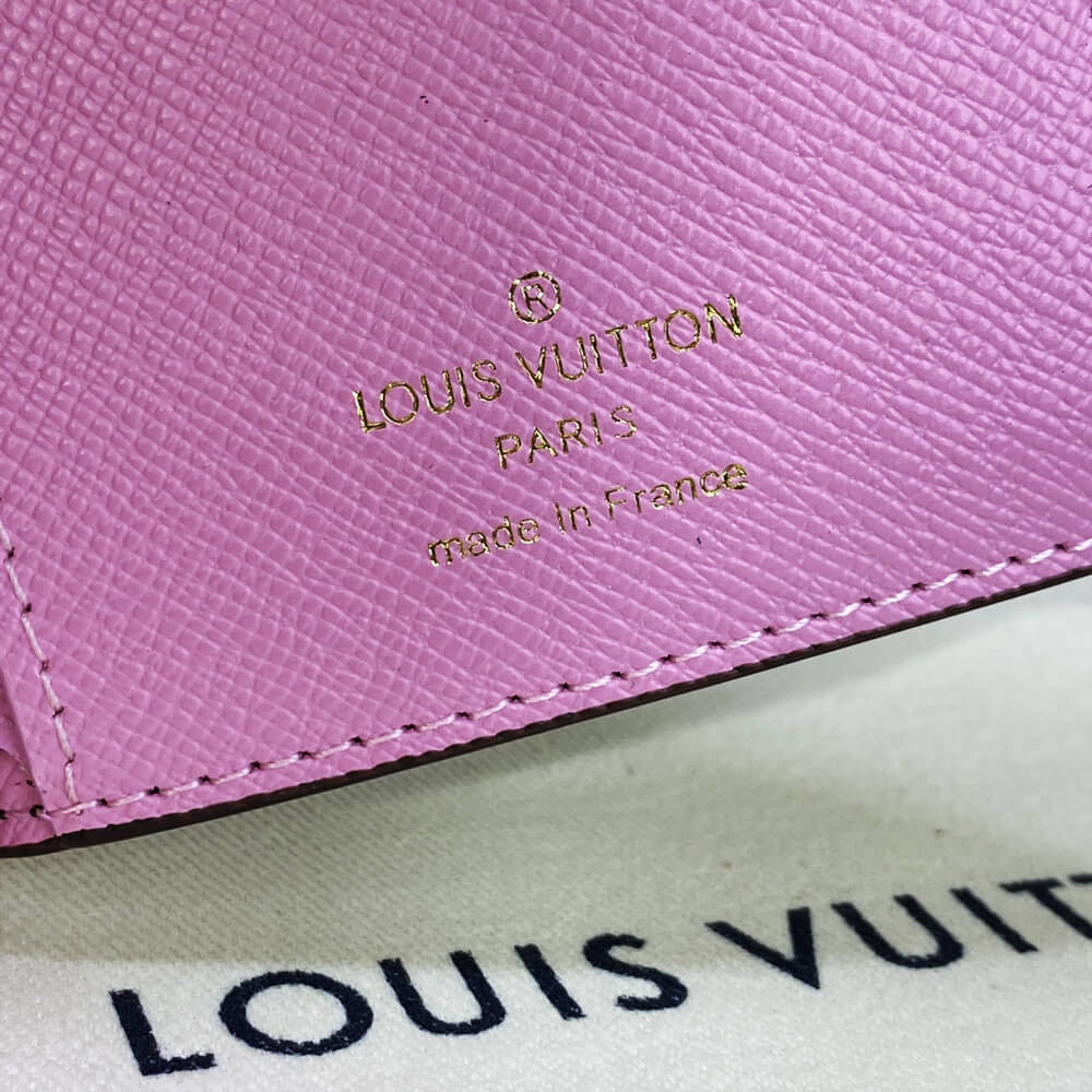 For the Holiday 2022 collection, the Victorine wallet in Monogram canvas is revisited with an exclusive print celebrating the spirit of travel. It features Louis Vuitton’s Vivienne mascot cycling past its Paris boutique, with the iconic column of Place Vend?me in the background. This collectible edition of this tiny, fold-out wallet is finished with a pink leather lining.