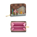 For the Vivienne Holidays 2022 collection, the emblematic Zippy coin purse in Damier Ebene canvas is revisited with an exclusive print evoking Louis Vuitton’s travel heritage. It features the House’s Vivienne mascot cycling past the Paris boutique on Place Vend?me, with the historic Vend?me column in the background. This compact, zip-around purse opens to reveal a pink leather lining.