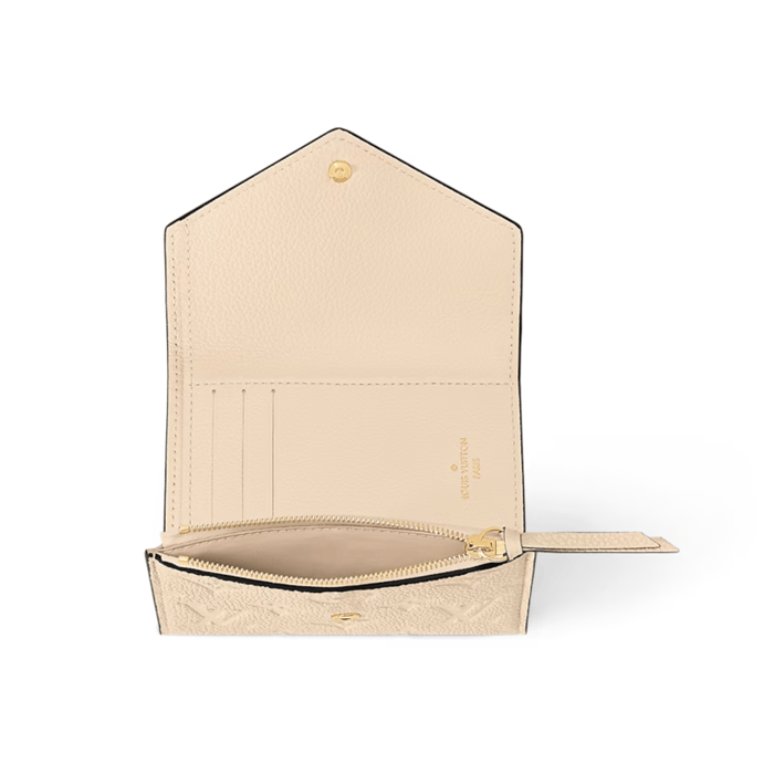 The Victorine envelope-style wallet is crafted from supple Monogram Empreinte leather, embossed with the iconic Monogram pattern. This compact, feminine wallet is characterized by its exceptionally functional design, which opens out to reveal an array of practical features, including card slots, a pocket for bills and a zipped coin compartment on the side.