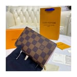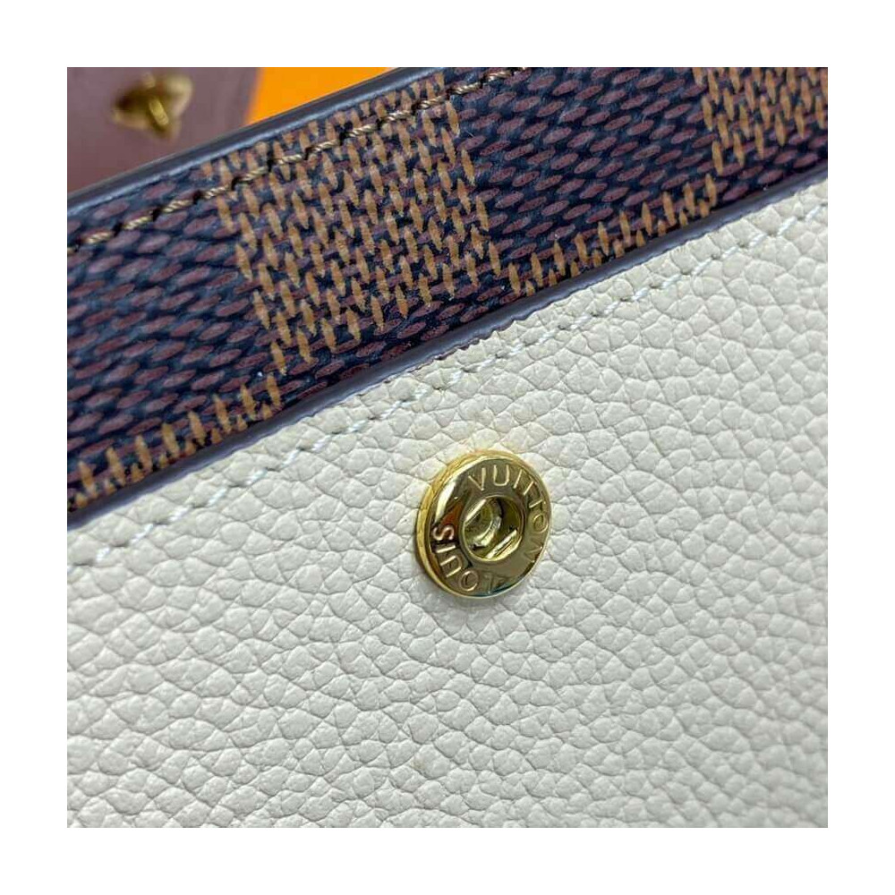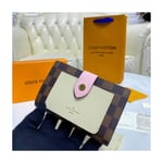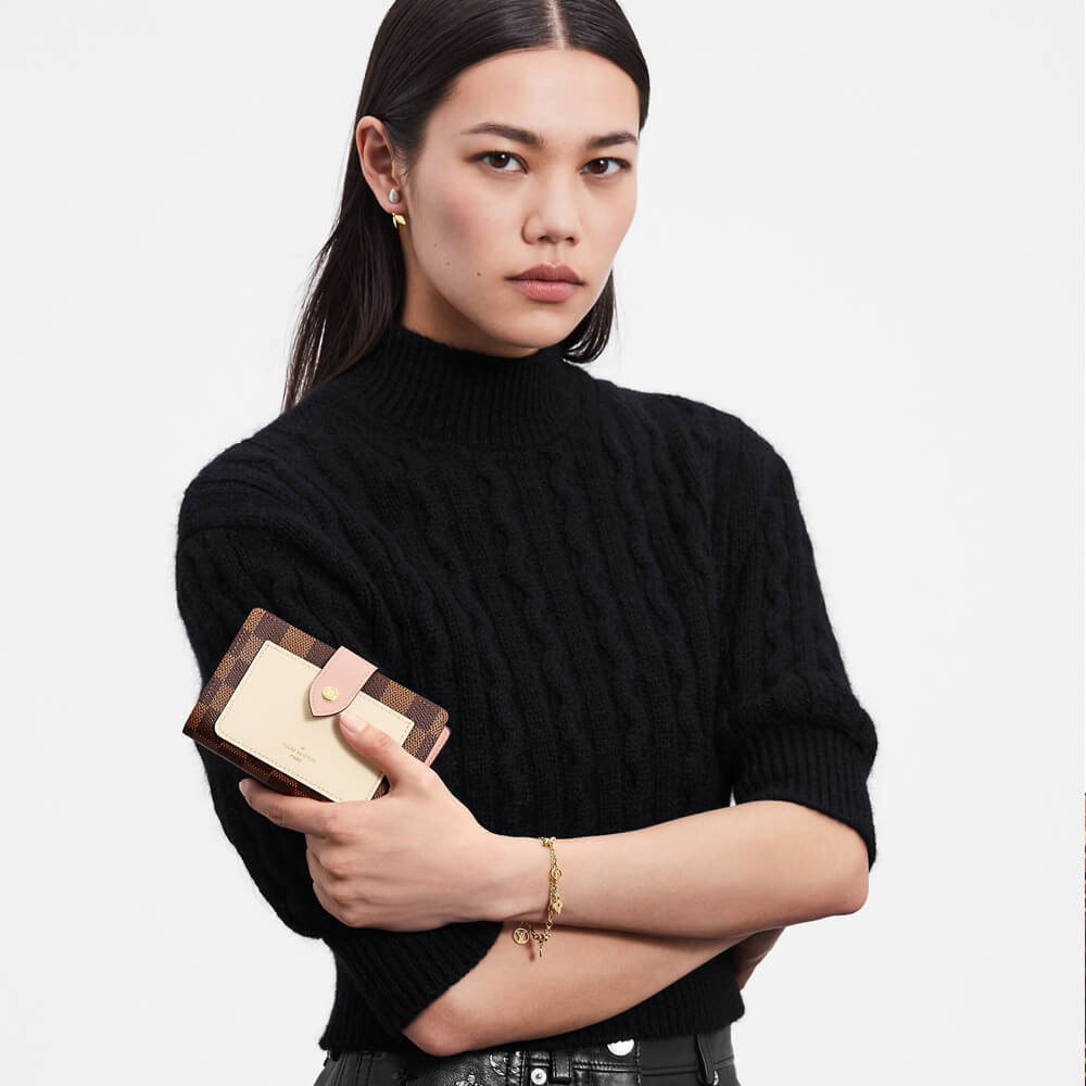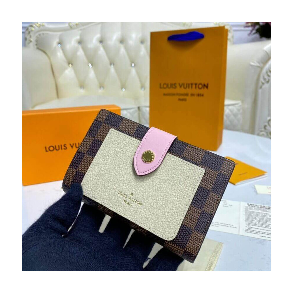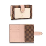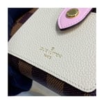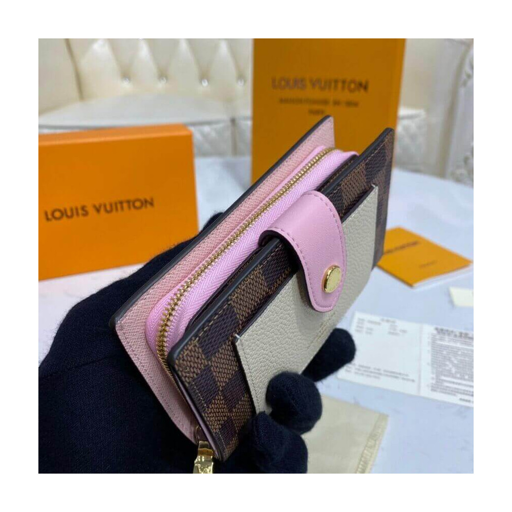 The Juliette Wallet is the perfect medium-size compact wallet, offering several card slots, a pocket for notes and a spacious zipped coin compartment within its space-efficient format. This version is crafted from Damier Ebene coated canvas with two colours of leather trim. The leather front pocket is embossed in gold with the Louis Vuitton signature.