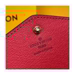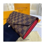 The Sarah Wallet comes in Louis Vuitton’s historic Damier Ebene canvas, complemented by a grained leather lining. This classic wallet combines a feminine look with a highly functional design, including two roomy compartments, a zipped coin pocket and numerous card slots. Its envelope-style flap is sealed with an engraved, gold-tone press stud.