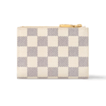 This seasonal update of the Lisa Wallet is defined by the iconic Damier Azur print – a House of Lisa classic. Both functional and refined, the wallet is crafted from canvas. Its compact design fits easily into a small handbag or clutch, and features multiple internal compartments for coins and notes, as well as four card slots.