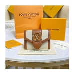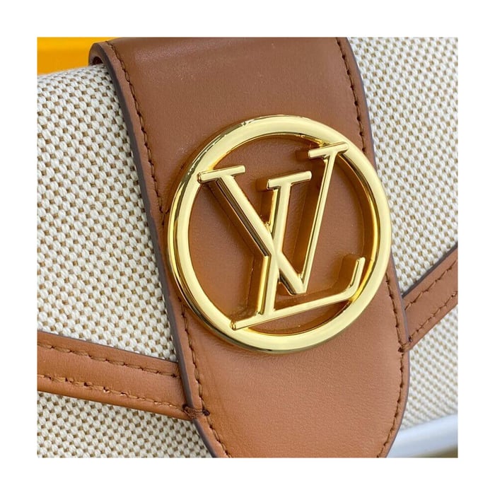 This refined interpretation of the LV Pont 9 compact wallet combines natural canvas with cowhide leather. The design is complemented by the oversized LV Circle closure in gold-tone metal. Though compact in size, this wallet offers a variety of practical pockets and six card slots.