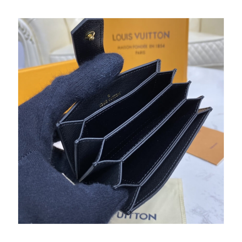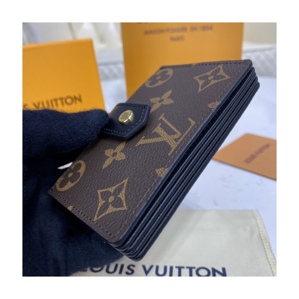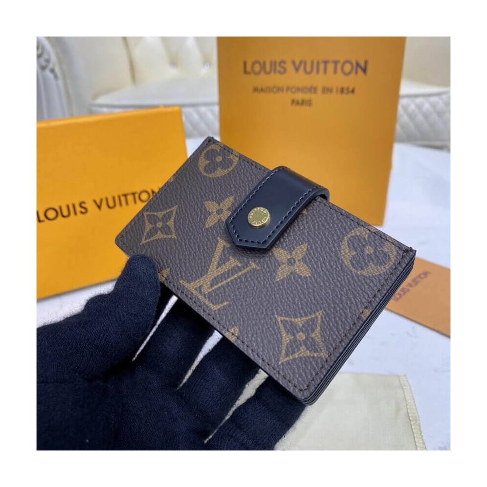 The Gusseted Card Holder combines iconic Monogram canvas with colored cowhide-leather trim. Its design is both compact and secure, thanks to the leather tab, which is closed with a Louis Vuitton-engraved, gold-tone press-stud. Once open, its five gussets offer easy access to bank, transport or loyalty cards.