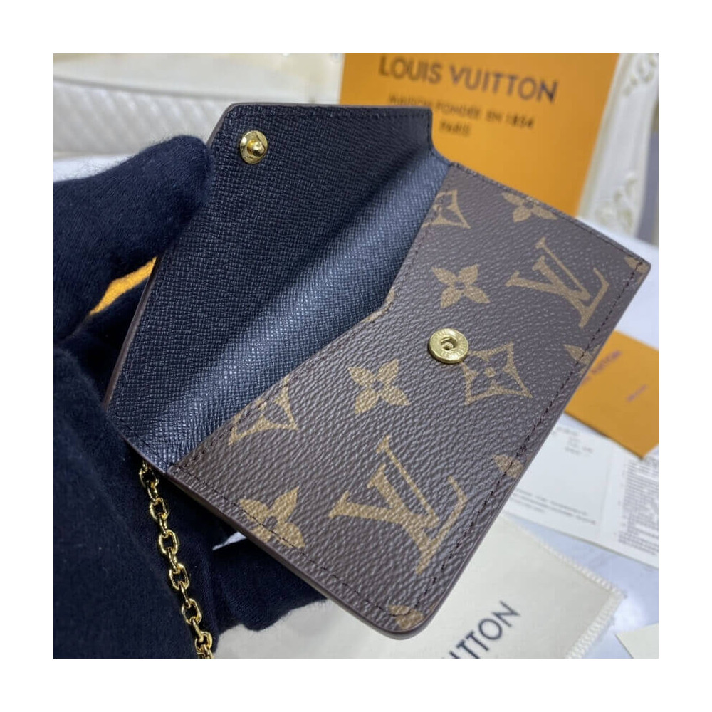 The Card Holder Recto Verso combines Monogram canvas with smart leather trim. It offers an envelope-style pocket at the front, an in-between pocket for folded bills, and a zipped compartment with a wide, L-shaped opening for coins. At the back, three card slots complete this ingenious, all-in-one accessory, which can be hooked onto a bag or belt.