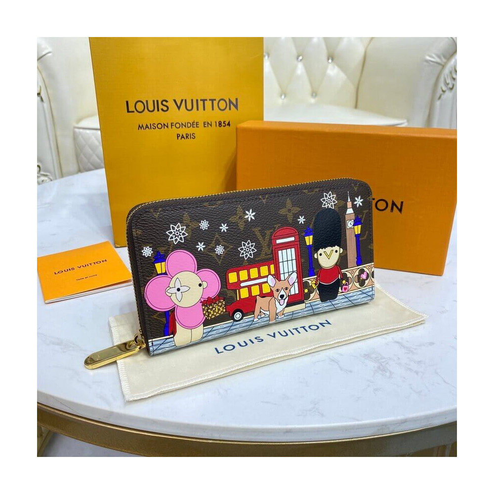 The Zippy Wallet in Monogram canvas takes on a playful look with its print of Vivienne, the House mascot, on Hollywood Drive. In front the LV Diner, Vivienne watches as a California bear drives by in a convertible. This sleek wallet, with its zip-around closure, features numerous compartments as a zipped coin pocket.