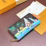 The Zippy Wallet is made from Monogram canvas with a print of Vivienne, Louis Vuitton’s mascot, on an ice-skating adventure. The inside is lined in grained leather the same color as Vivienne’s petals. The well-organized interior features three generous compartments, a zipped coin pocket, and 12 card slots.