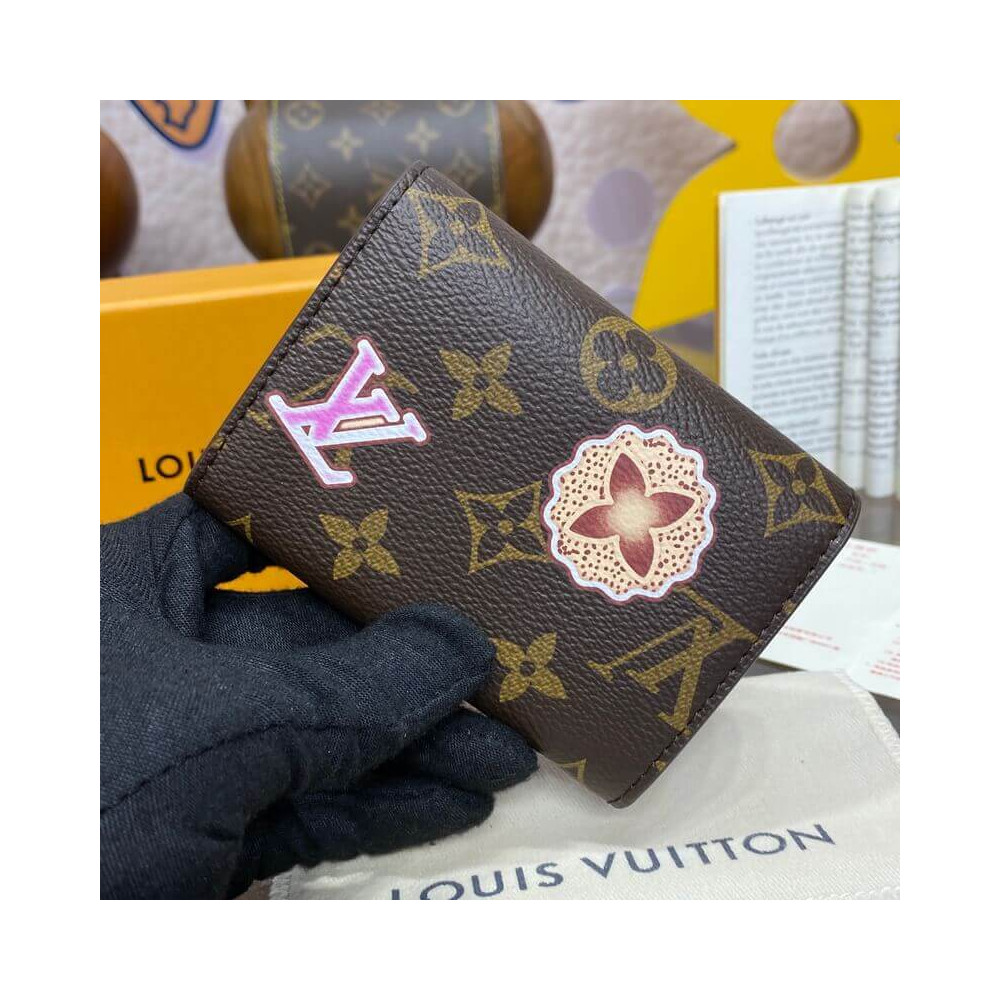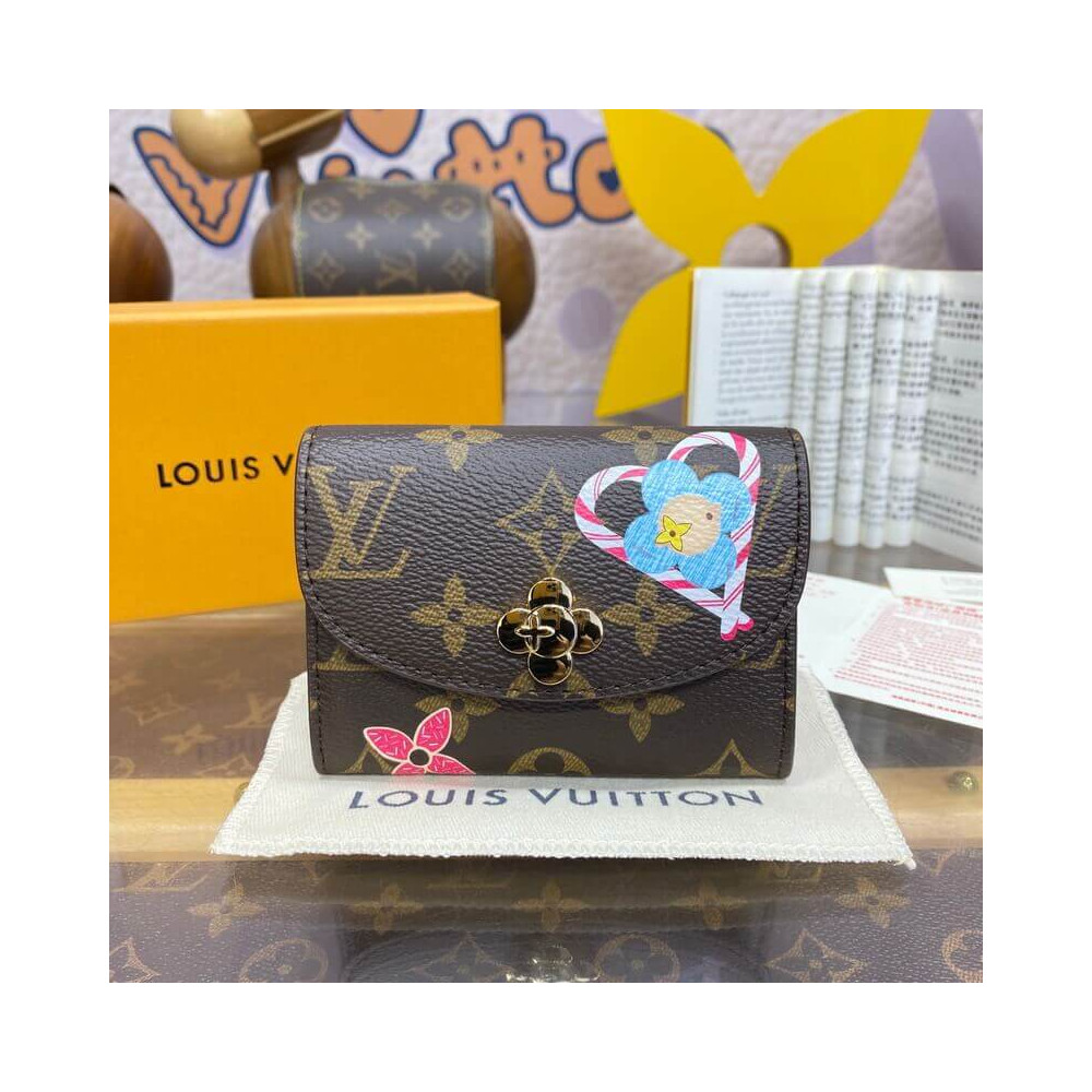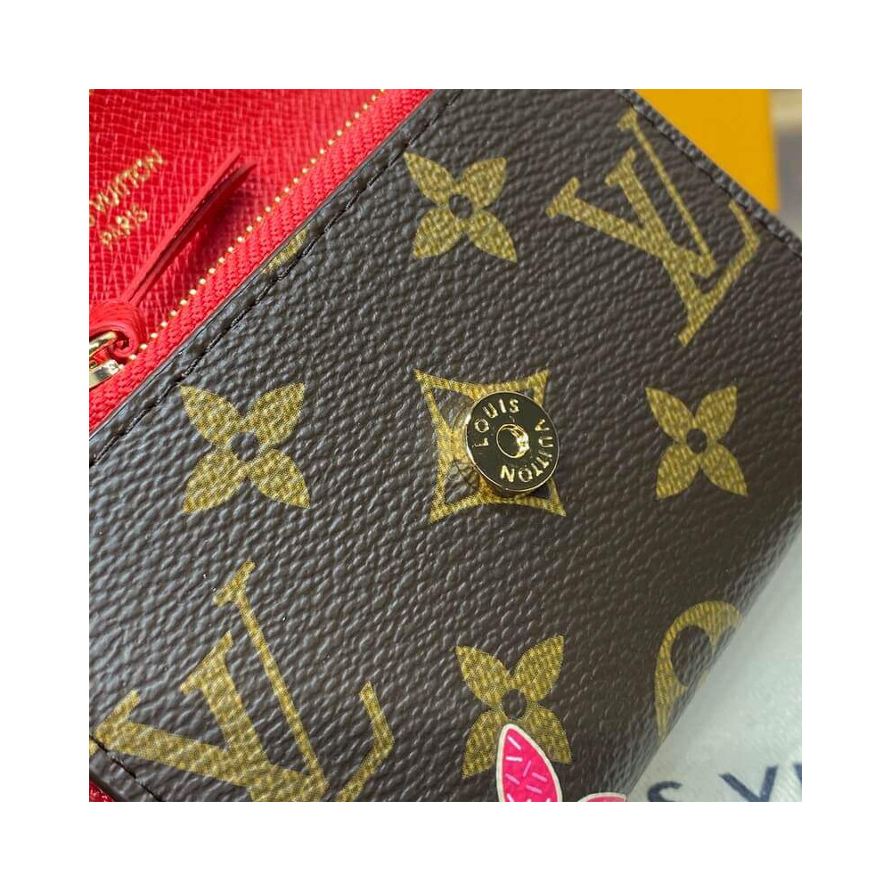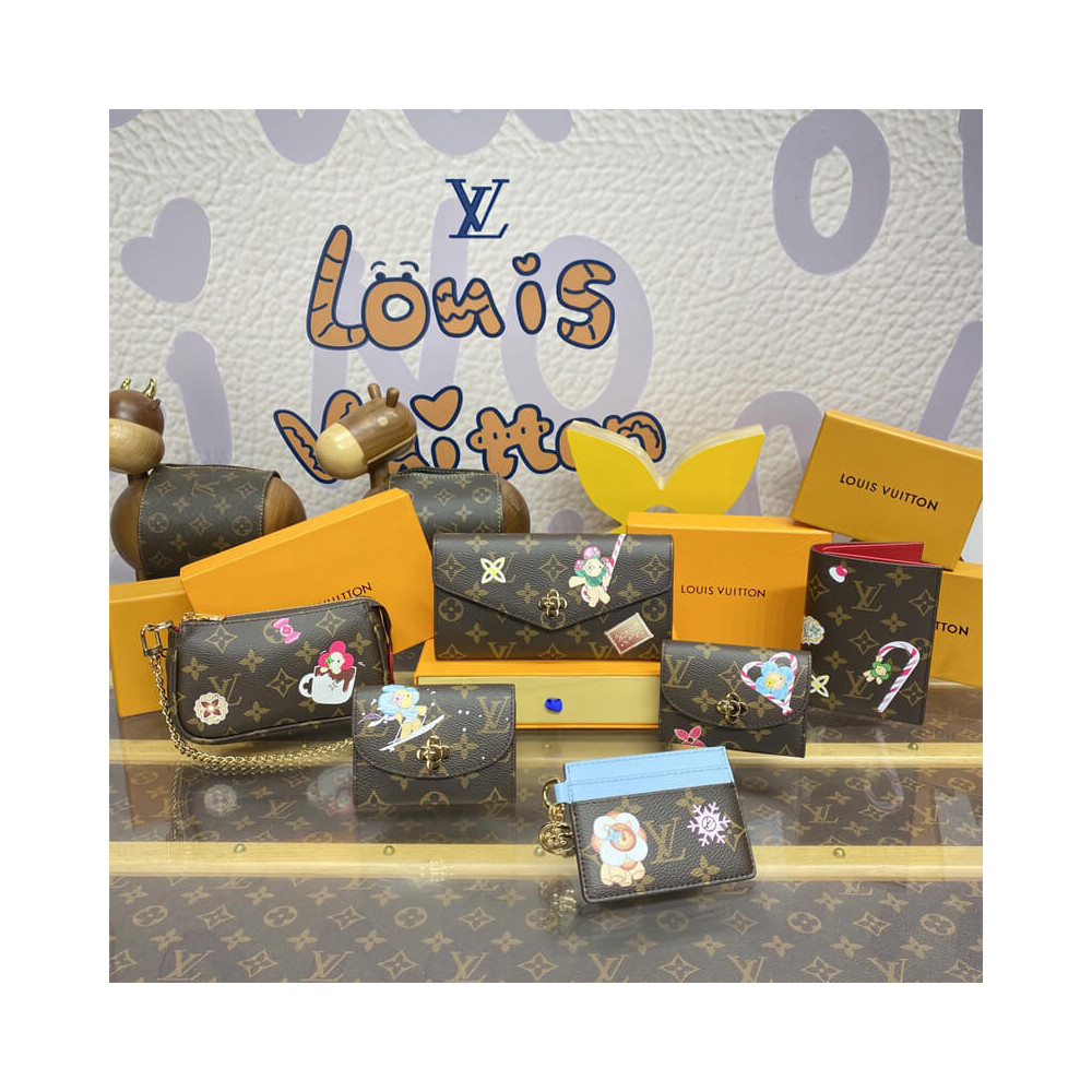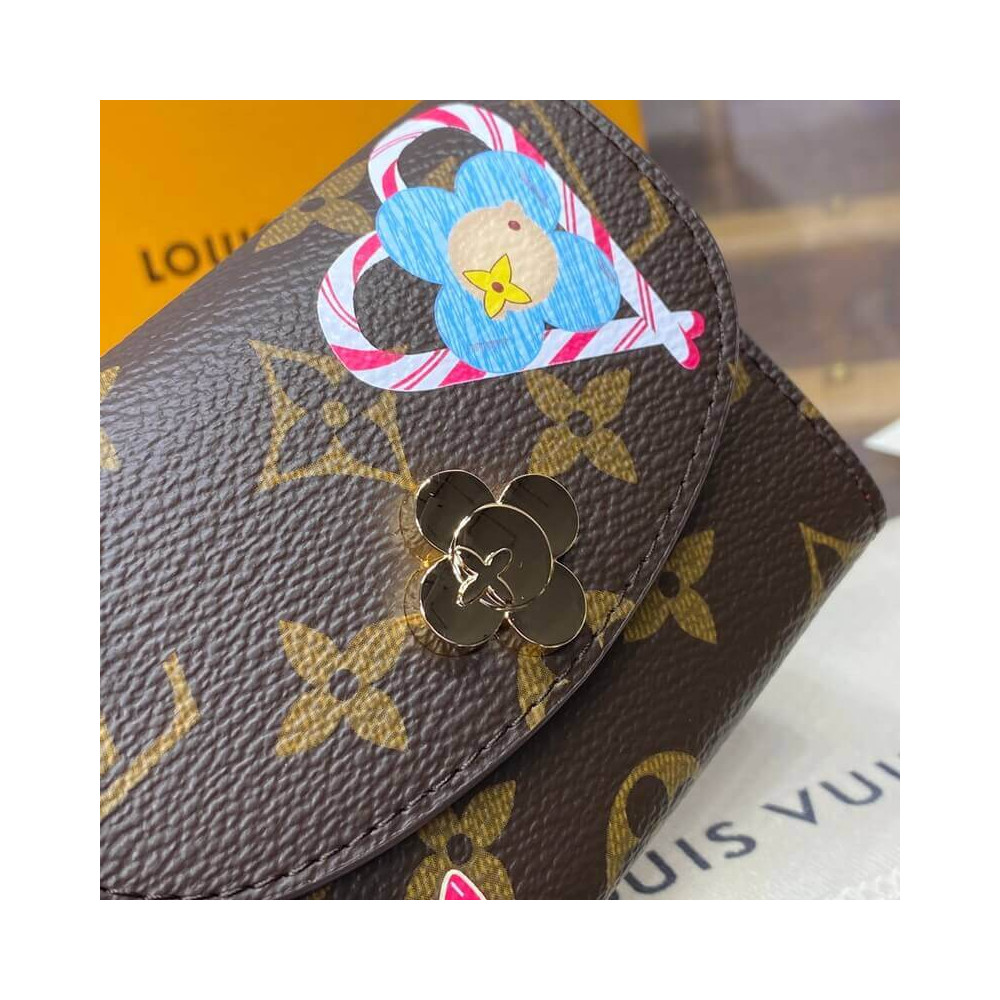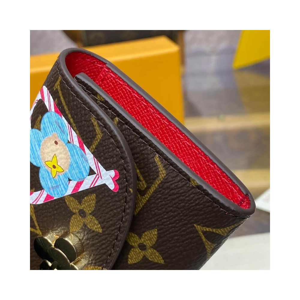 The Porto Monnaie Rosalie, featured in the Candy Factory collection, is the perfect gift for Vivienne fans. It is made from the signature Monogram canvas and decorated with illustrations exclusive to this season, including Vivienne framed by a heart-shaped candy cane. Its compact design features multiple pockets for coins, bills and cards. It closes with a snap button shaped like Vivienne’s face.